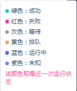 可视化的任务执行结果显示,任务调度脚本的执行结果通过脚本图标颜色区分,一目了然的了解任务调度情况,绿色成功,红色失败,橙色等待,蓝色运行。